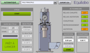 Equilabo propose des plateformes mono ou multiréacteurs automatisées pour l'optimisation des procédés. Ces plateformes incluent l'intégration de nombreux capteurs et actionneurs, le contrôle et l'enregistrement des paramètres de réaction. Elles existent en version sous pression atmosphérique ou sous haute pression.